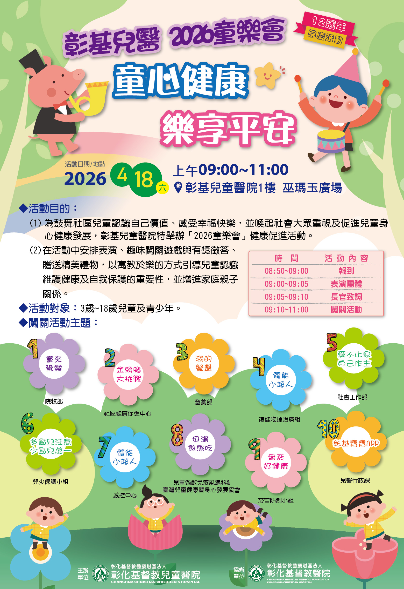 (二) 活動地點:彰化基督教兒童醫院巫瑪玉紀念公園(兒童醫院正後方)。